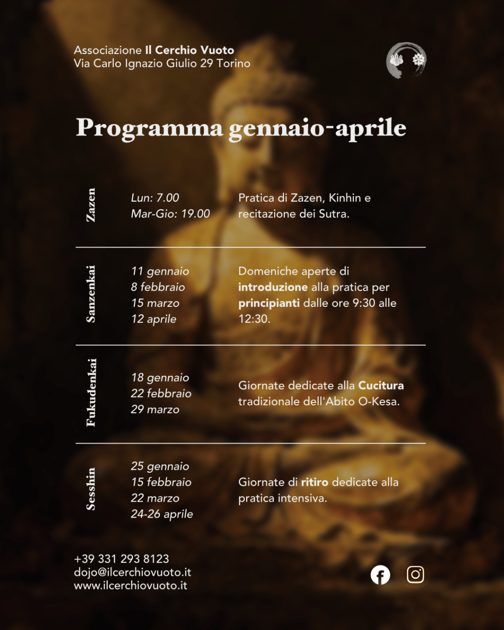 In questa locandina sono raccolte le attivitร principali previste per i prossimi mesi presso il Tempio Enkuji.