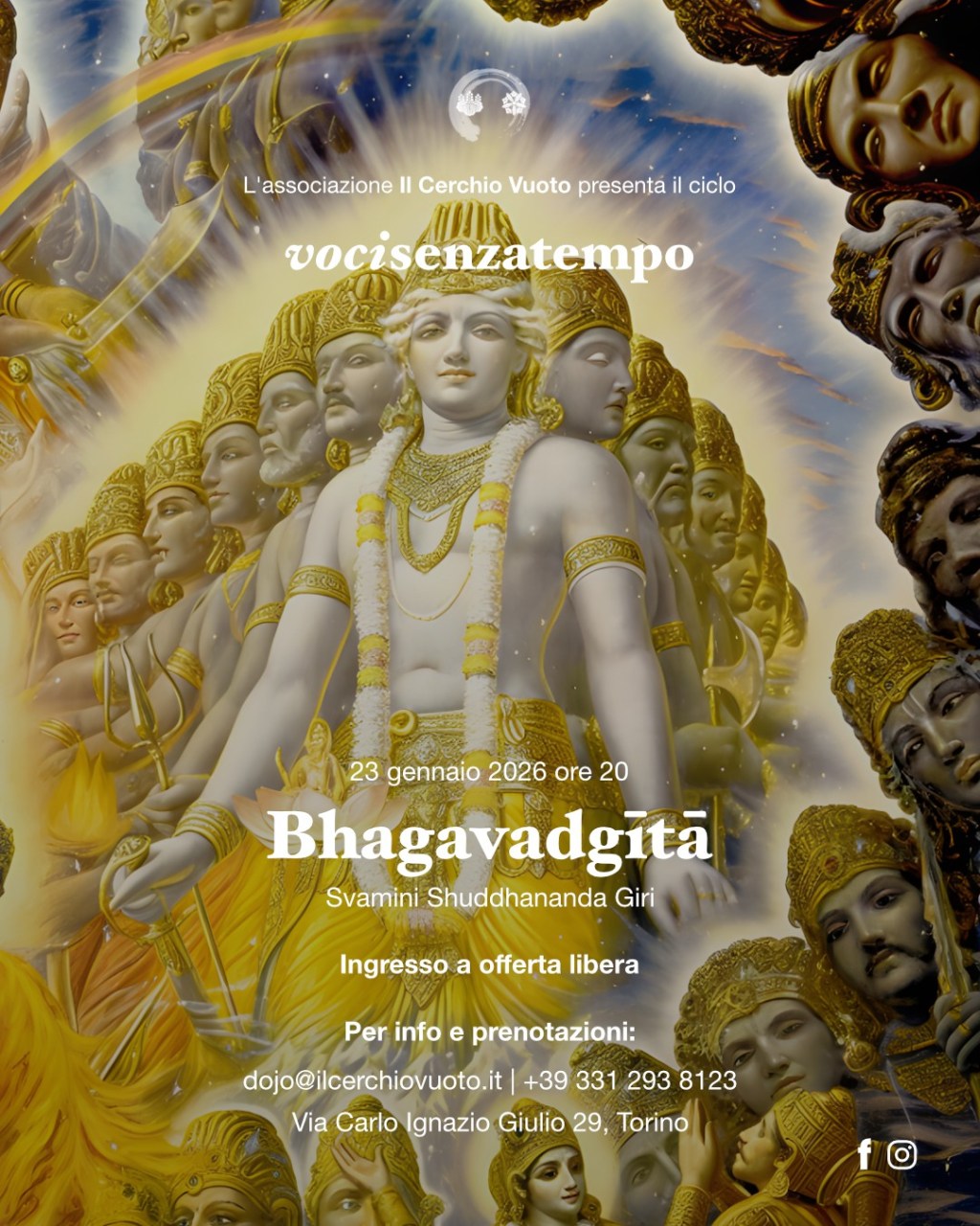 Prosegue il ciclo di incontri “Voci senza Tempo”. In questo nuovo appuntamento ospiteremo Svamini Shuddhananda Giri per un’immersione nella Bhagavadgita, uno dei testi più celebri e profondi della spiritualità mondiale.