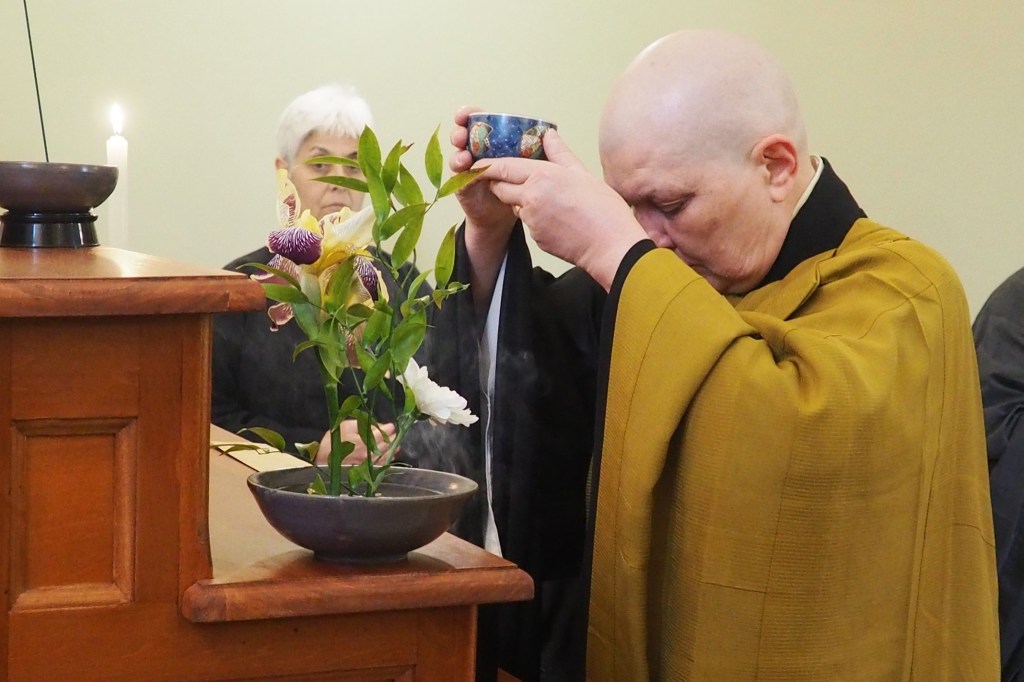Durante i nostri incontri, pratichiamo anche il Kinhin, recitiamo i Sutra e partecipiamo alle cerimonie della nostra tradizione.